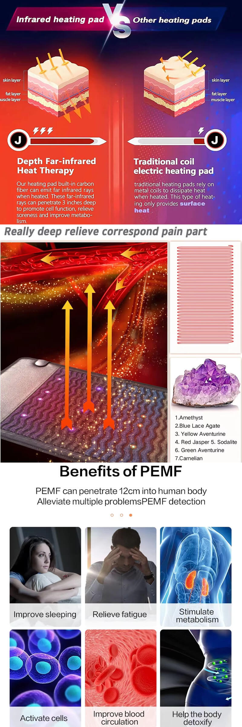 Professional infrared PEMF mat with amethyst